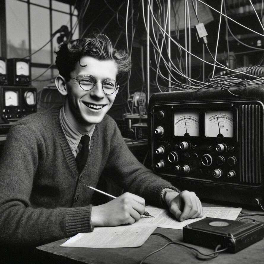 Hier hat mich KI (künstliche Intelligenz) in die 20er Jahre des Amateurfunks versetzt. Tatsächlich sahen die Funkbuden früher ähnlich aus. Und es war durchaus eine solide Technik und nicht so ein Wegwerf-Schrott wie heutzutage aus China