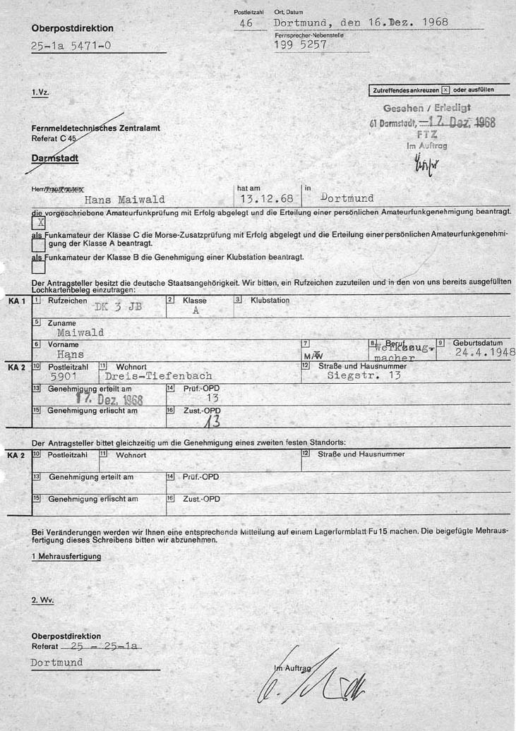 Postalisches Rufzeichen der Bundesnetzagentur: DK3JB