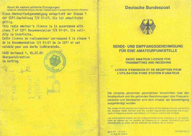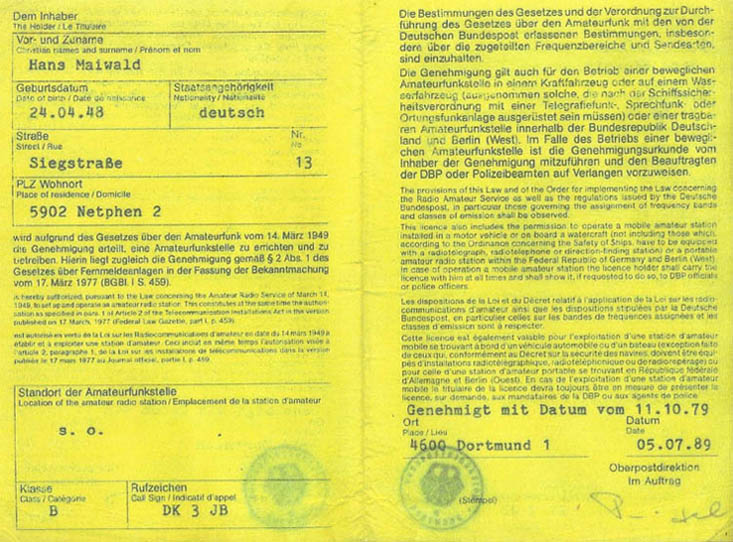 Die zweite, 1989 ausgestellte Genehmigungsurkunde der früheren Deutschen Bundespost